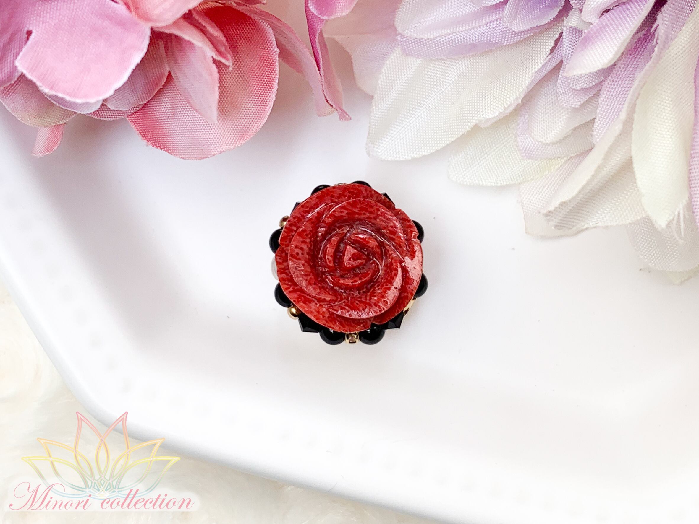 アフリカ珊瑚(別名:イソバナ珊瑚)を艶やかなバラの形にカットしました。